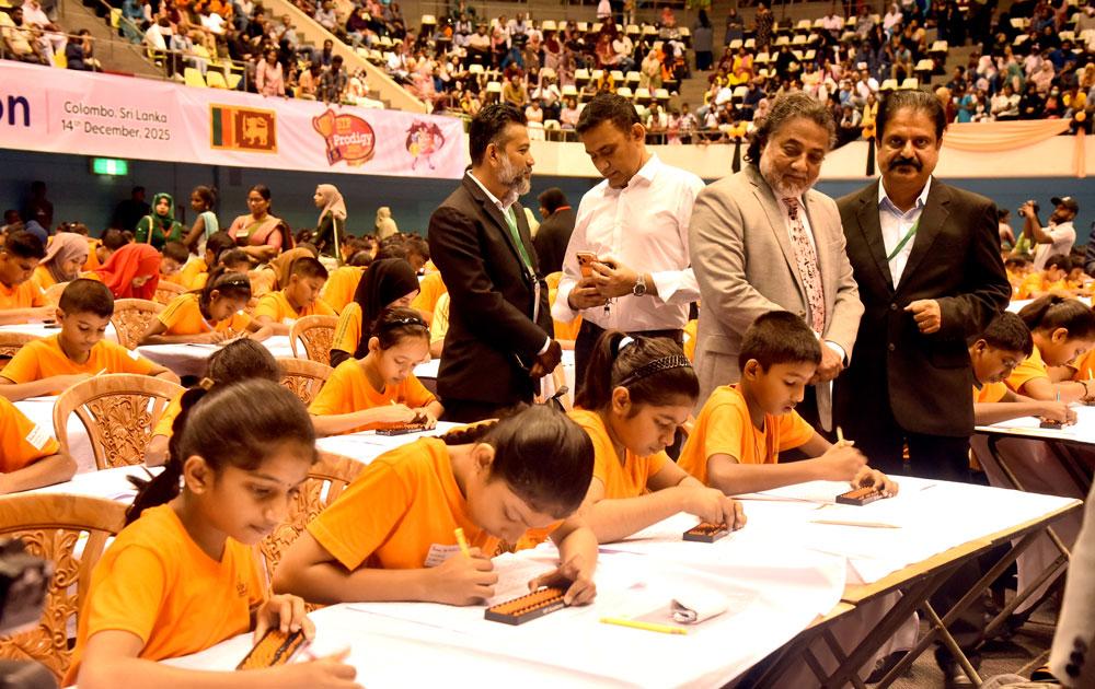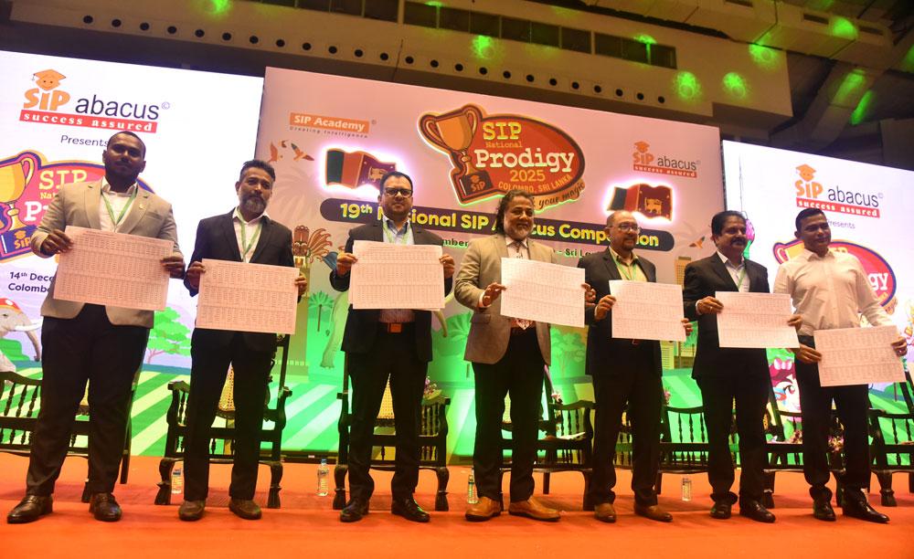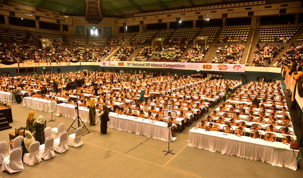 Over 1,000 children participate in the 19th SIP National Abacus & Mental Arithmetic Competition at Sugathadasa Indoor Sports Complex. Deputy Speaker Dr. Rizvie Salih was the chief guest, while special guests Sanjeev Menon and Shezad Khan from India also attended.